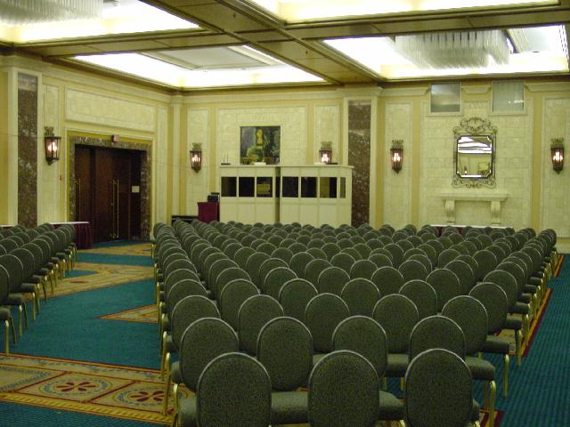 | Auditorium Setup Setup style in which the participants are seated in rows of chairs with no table, desk, or writing surface in front of them. This type of setup is usually utilized for presentations where two way conversation is minimal and questions are accommodated by the use of an audience microphone. The security of the conference proceedings will dictate the type of Simultaneous Interpretation Equipment used at the conference. Wireless FM Conference System Infrared Conference System. |