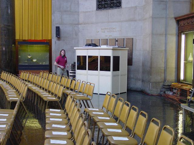 The Wireless FM Conference System provides two-way interpretation for conferences which have mainly presentations into a language with little to moderate Question & Answer Sessions. Due to our advanced audio technology and frequency agile receivers, conferences for two languages or twelve can be handled with relative ease. Contact GEN and let us assist you in choosing the proper system for your event. A Wireless FM Conference System is used for meetings and conferences where a two or more languages are spoken. The system is designed to provide Simultaneous Interpretation from one language into another and vice versa. The system provides one channel for each language allowing participants to wear their earphone without disruption in their native language audio. The participants receivers are FM Wireless allowing them to be flexible at events and allowing them to be mobile while still getting the interpreted language. The receivers offer and easy to read LCD Screen informing users of channel, signal strength and battery life. Easy to use buttons allow users to toggle between languages (channels). Global Equipment Network can provide a Wireless FM Conference System for bilingual meetings to a four (English, Chinese, Japanese, Spanish) language international conference (pictured at right). We can also provide equipment for an eleven language international event. Although a Wireless FM Conference System can be used for virtually any type of meeting setup, they are ideally suited for an Auditorium and Classroom set ups. |